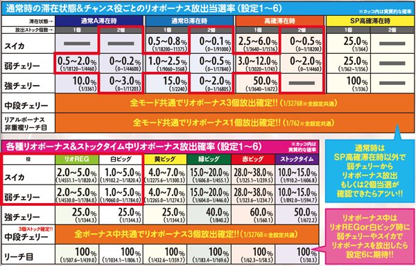 各種リオボーナス&ストックタイム・リオボーナス放出確率