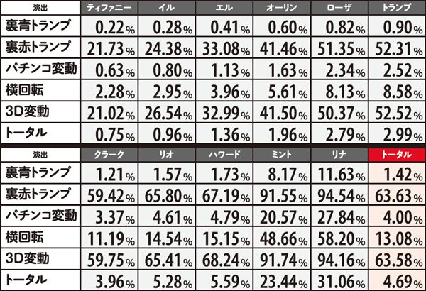 ST中は裏赤トランプと3D変動が大チャンス。最初にめくれるカードのキャラが重要で、ミントやリナなら超激アツだ。最初から図柄が揃って表示されることもある。