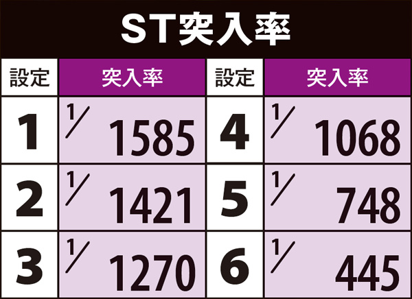 突出したST突入率を見てわかる通り、設定6は完全なエクストラ設定の位置づけである。