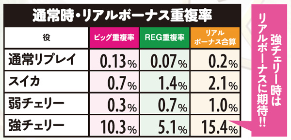 弱チェリー+リアルREG重複確率