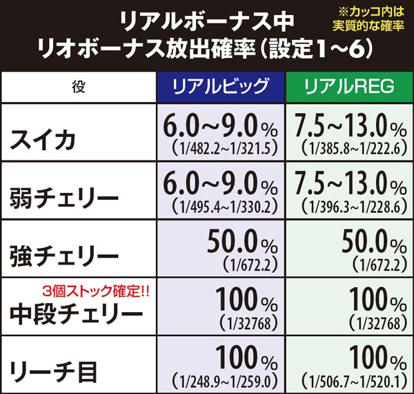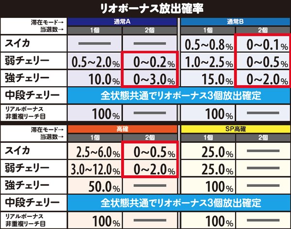 リアルボーナス・リオボーナス放出確率