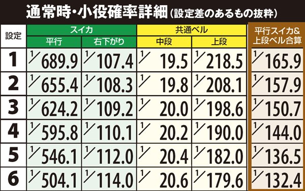 通常時・小役確率詳細