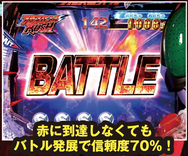 ダブルorトリプルライダー発展が確定する演出。最終的に表示される文字が「BATTLE」なら、トリプルライダー発展濃厚だ。