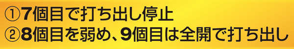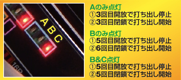 電チュー1回目の開閉が早く、小デジを目視した後ではその開放を見逃すおそれがある。それを防ぐためにも、2回目の開放でパターンを見極めて、止め打ち手順を打ち分けよう。