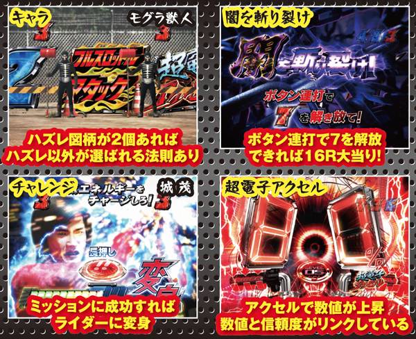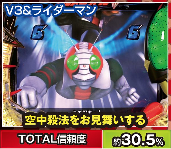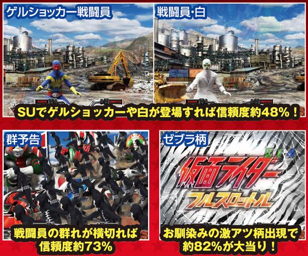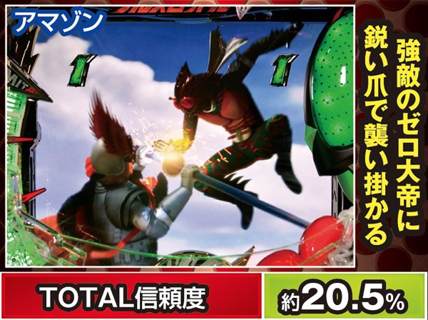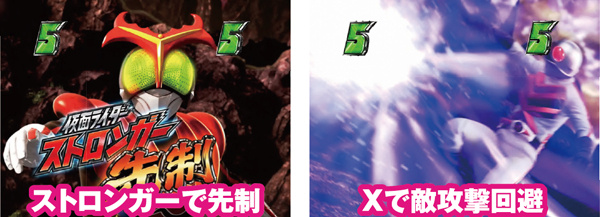 一般的なバトルでは攻撃をくらうと不利な展開に陥ってしまうことが多いが、アマゾンに限っては別で勝利が濃厚に。また、ストロンガーも被弾した場合は勝利濃厚とまではいかないものの、4R以上の大当りが約束される。