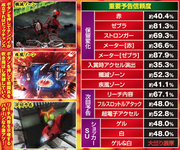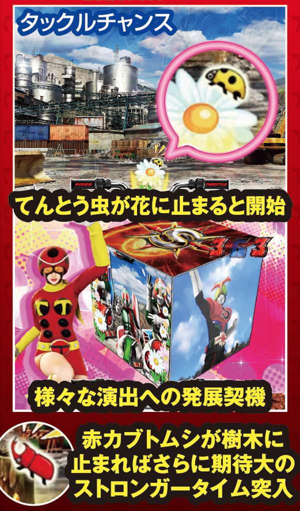ゲルショッカーや群予告など、シリーズお馴染みのアクションが目白押しのなか、女性ライダー・タックルの演出も新搭載。発生でスーパー発展の好機となる。