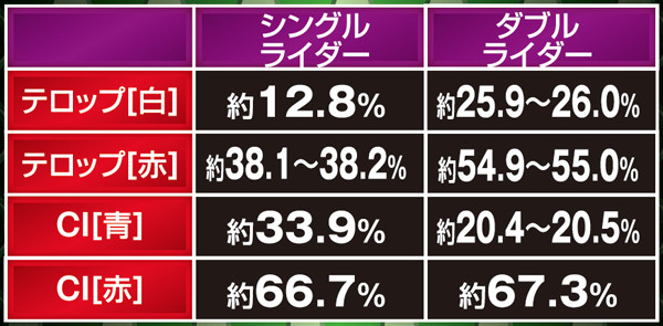 通常時・シングル&ダブルライダーのチャンスアップ信頼度