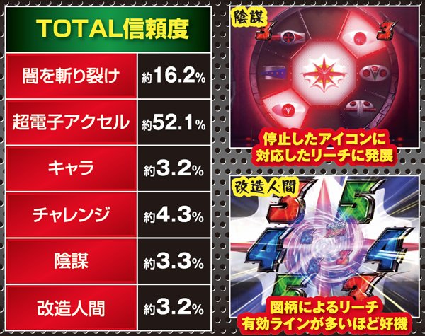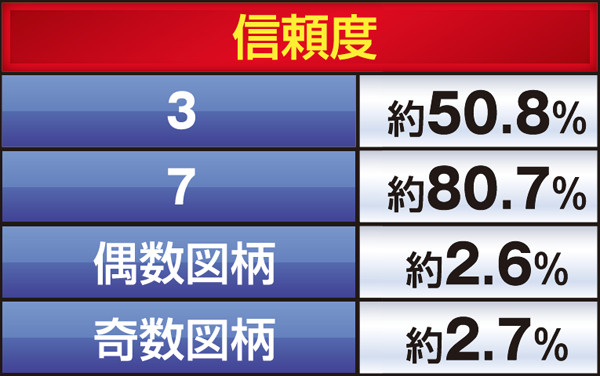選択される演出よりも、表示されたパネルの組み合わせによって、信頼度が変わってくる点に注目しておこう。