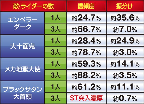 大決戦ボーナス・敵&ライダー別信頼度