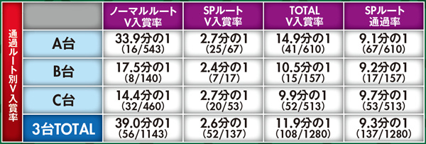 ・ノーマルルートからのV入賞率は台ごとに大きな個体差あり