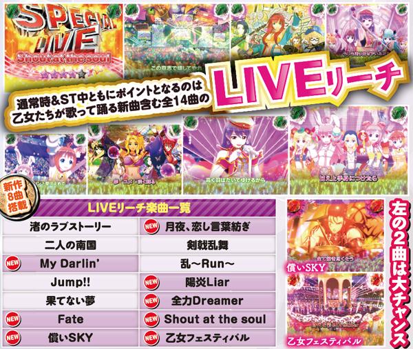 タイトルを越え乙女達がシャッフルし、全5チームが誕生。LIVEリーチの楽曲は全14曲で、うち8曲は完全新作と平和萌えファンにはたまらない。なかでも25名全員がコラボする乙女フェスティバルは期待度も高い。