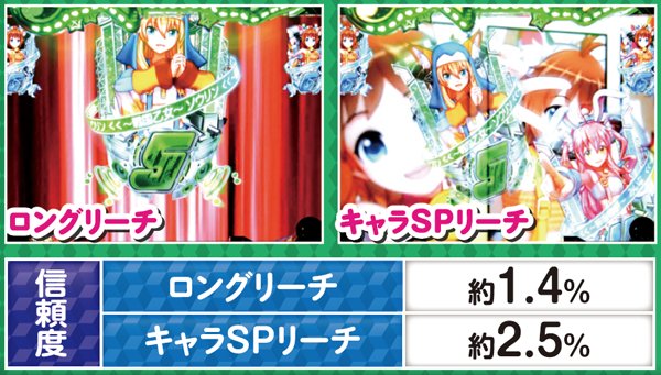 ロングやキャラSPリーチで直接大当りを狙うのは厳しいので、基本的には強アクションへの発展を期待したい。