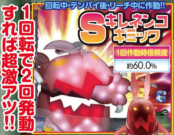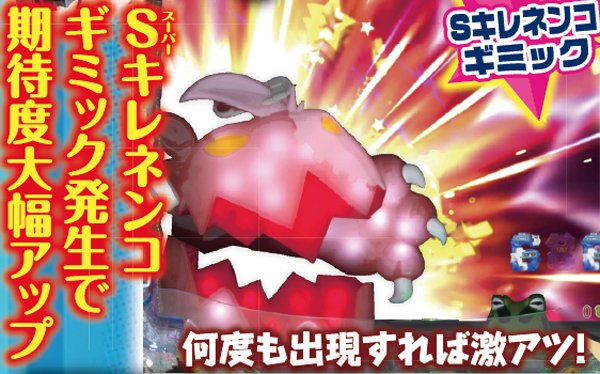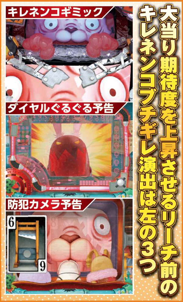 原作同様キレネンコがキレるほど大当りのチャンス。液晶上部のギミックやスーパーキレネンコ出現で期待度がアップする。中でもスーパーキレネンコギミックは複数回出現すれば、超激アツとなるのだ。