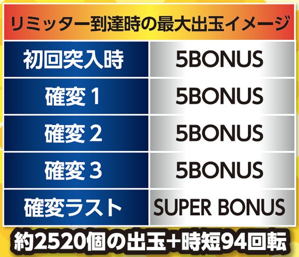 | 電サポ回転数 | 0or64or84or94回転or次回まで |