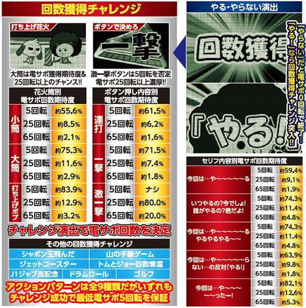 回数獲得チャレンジは全9種類存在。チャレンジに成功すれば電サポ獲得となる。