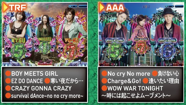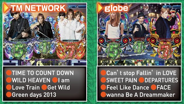 「TM NETWORK」「TRF」「globe」等、小室哲哉が歌手として、そしてプロデュースしてきたアーティストの共演がついにホールで実現。本機『PROJECT TK』はリーチや大当り中に氏が生み出した名曲の数々を存分に堪能することが出来るのだ。 なお、スペックは大当り確率約226分の1、「PREMIUM LIVE RUSH」と銘打たれた連チャンモードに50%で突入する仕組みとなっている。 |