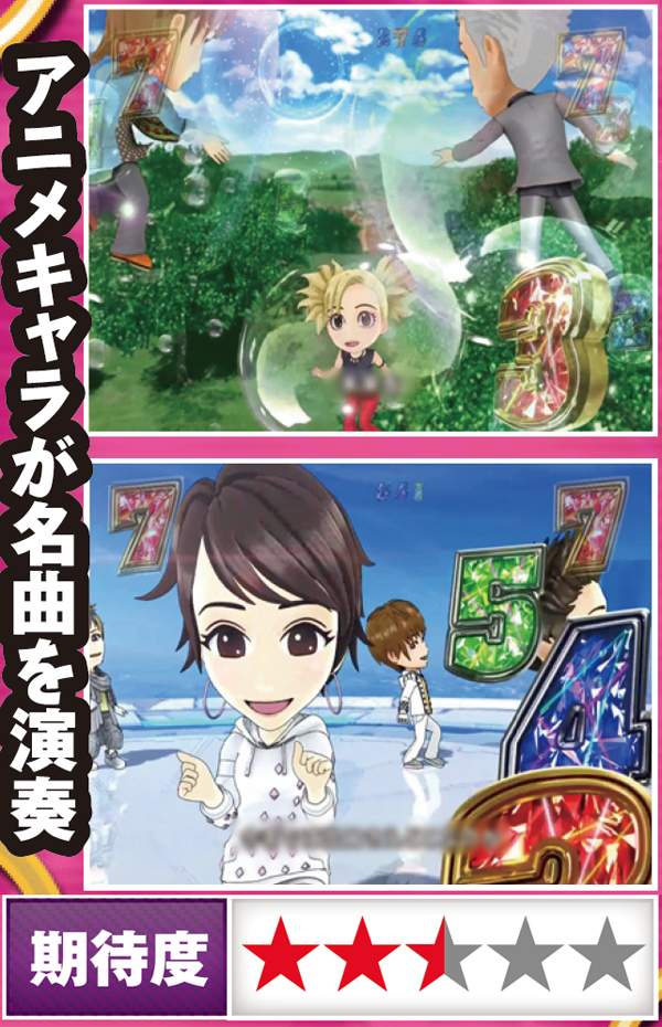 アニメで表現されたアーティストが持ち歌を順に歌い、4組全てが歌い切れば大当りとなる。