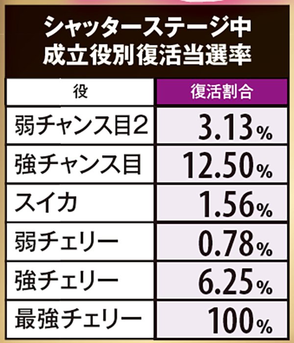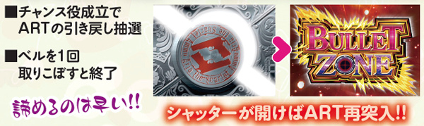 シャッターステージ中のART復活抽選は、基本的に期待薄。ただし、通常時に戻ってもストック保有時は最初のCZ到達→ART当選の流れを辿るので、即ヤメは厳禁だ。