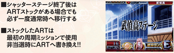 本機にはARTストックの概念があり、保有時は一旦通常時に移行→最初の周期CZでARTに再突入する。外部からストック放出orミッション成功による当選の判別はできないが、最初の周期CZまでは様子を見るべきか。