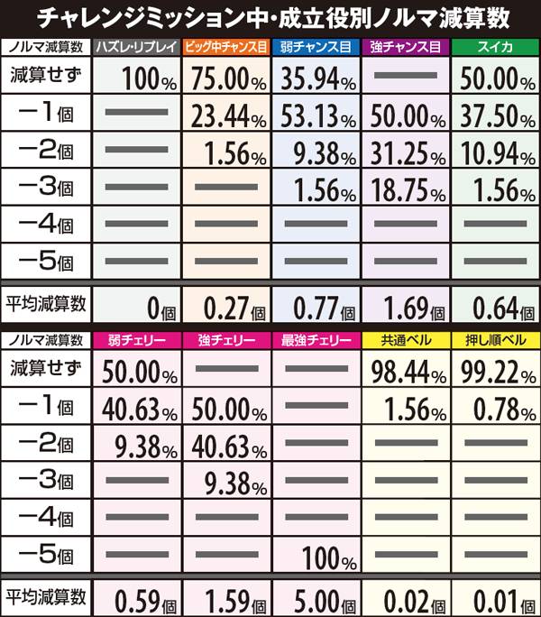 チャレンジミッション・成立役別ノルマ減算数