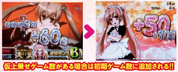 アリアがメイドコスプレだった場合は、例外なく50G以上を選択。継続ゲーム数が多ければ武偵弾も多く獲得できる可能性があるので、継続ゲーム数は非常に重要だ。なお、ここでの成立役はゲーム数選択には反映されず、チャンス役成立時はART中と同じ抽選が行われる。