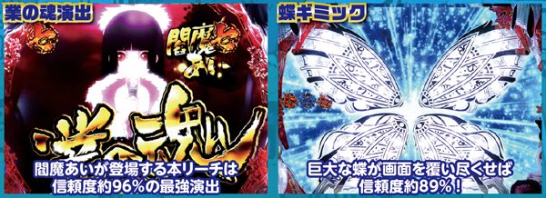 初当り確率が高くなったことで、前作から継承した業の魂演出や蝶ギミックの期待度が大幅アップ!