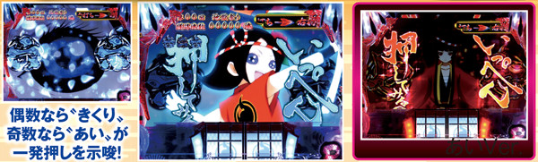 前作から継承したリーチはいずれも高信頼度を誇っているが、中でも三藁系は特別な存在になる。三藁だけに(?)テンパイ図柄が「三」に切り替わることがあり、大当りを射止めれば、電サポが約束されたお祭りチャレンジとなるのだ。