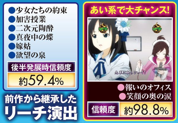 大当り確率が激甘なので激アツ演出の信頼度も激高になっている。