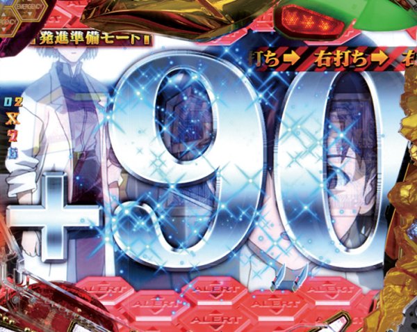 発進準備モードの電サポ回転数は10回転と100回転の2種類で、10回転終了後に継続か否かのボタン演出が発生。100回転であれば時短連チャン率は約54.4%と大いに期待できる。