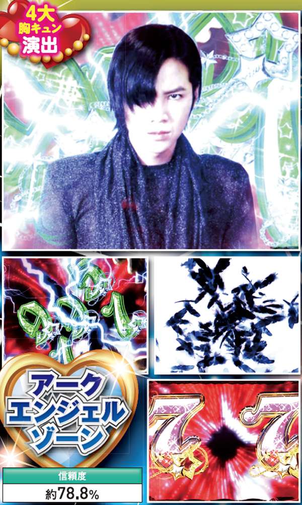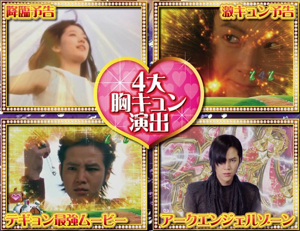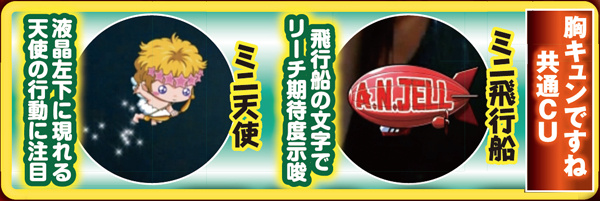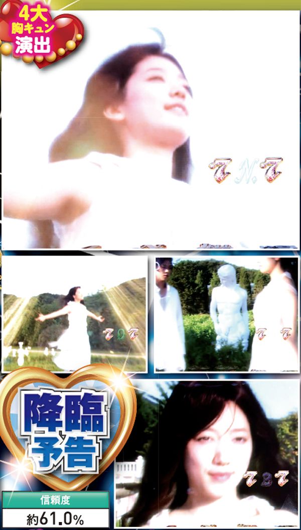 大当りを射止める最強リーチ群の胸キュンリーチは降臨予告から発展すれば、さらにアツさを増す。共通CUは2つで、いずれも内容により期待度が異なるようだ。