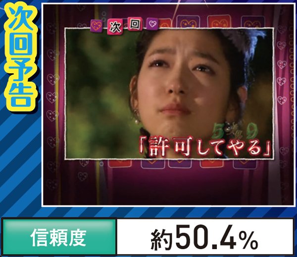 いずれもドラマの展開が大きく変化する重要なシーンだけに、信頼度も抜群の高さを誇る。さらにチャンスアップの金色テロップや激アツ等と書かれた垂れ幕が加われば鬼に金棒だ。タイトル色も見逃し厳禁。