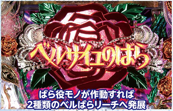 | 機種概要 | ベルばらが100%突入のST10回転+時短30回転で登場。15R確変がヘソ・電チュー共通で20%あるので、まとまった出玉の獲得も可能。 |