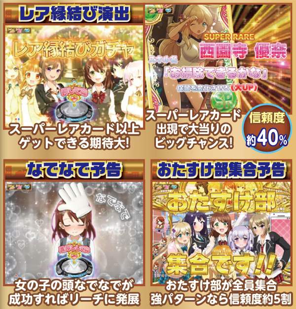カードのレア度は7段階あり、激レアのカードを引けばチャンス。激アツ背景は信頼度70%超の、その名に恥じない激アツ演出だ。