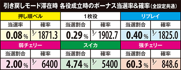 ボーナス当選率&確率・モード別各役成立時