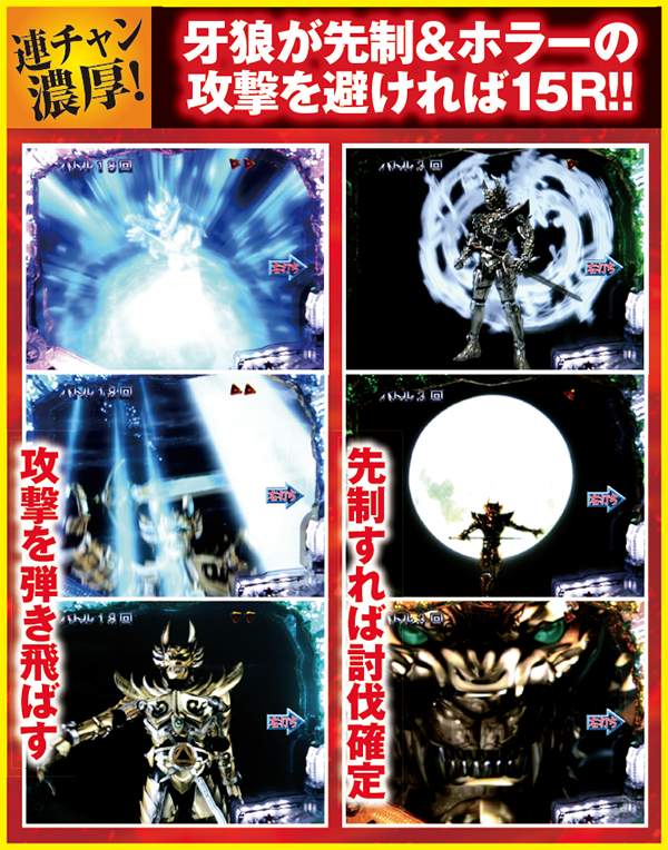 ホラー&キバ問わず、牙狼が攻撃を受けた時点で15Rの可能性はゼロ。回避成功で継続、失敗した場合は復活に期待すべし。