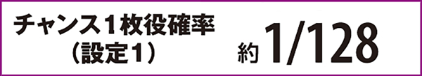 空き台から優秀台を探す場合は初当り出現率に着目すべきだが、プレイ中はチャンス1枚役出現率から設定の高低を判別する方が効率的。60分の1程度で出現するようなら設定6に期待できそうだ。なお、本機は設定により連チャンループ率が異なるが、この点の推測は難しい。