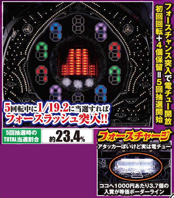 | 確変突入率 | フォースラッシュ/約23.4%(突入率) |