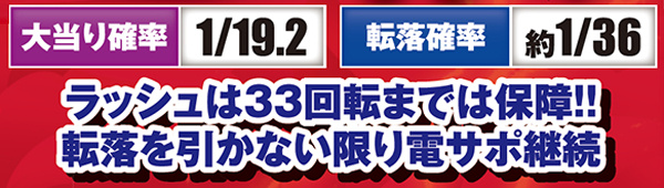 ●電サポ33+α回転で1/19.2を引き続ける限り継続!!