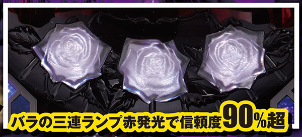フォースチャンスに突入したら、必ずフォースチャージ(電チュー)に玉を入れよう。入賞し損なうとその分抽選する回数がへっていしまい、ラッシュへの道が遠のいてしまう。ボタンPUSHで盤面に虹色のバラが浮かび上がれば待望の大当り=ラッシュ突入だ。
