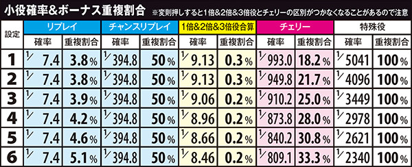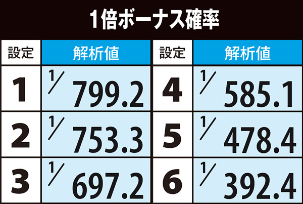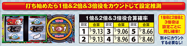 設定判別・推測ポイント > 小役確率 > 1倍&2倍&3倍役合算確率を更新しました