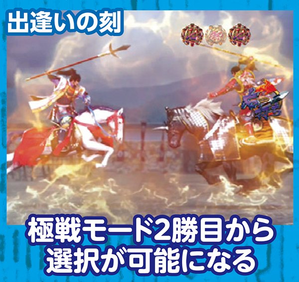 極戦モードで2勝目をあげたら、出逢いの刻モードも選択可能になる。好きな演出で楽しもう。