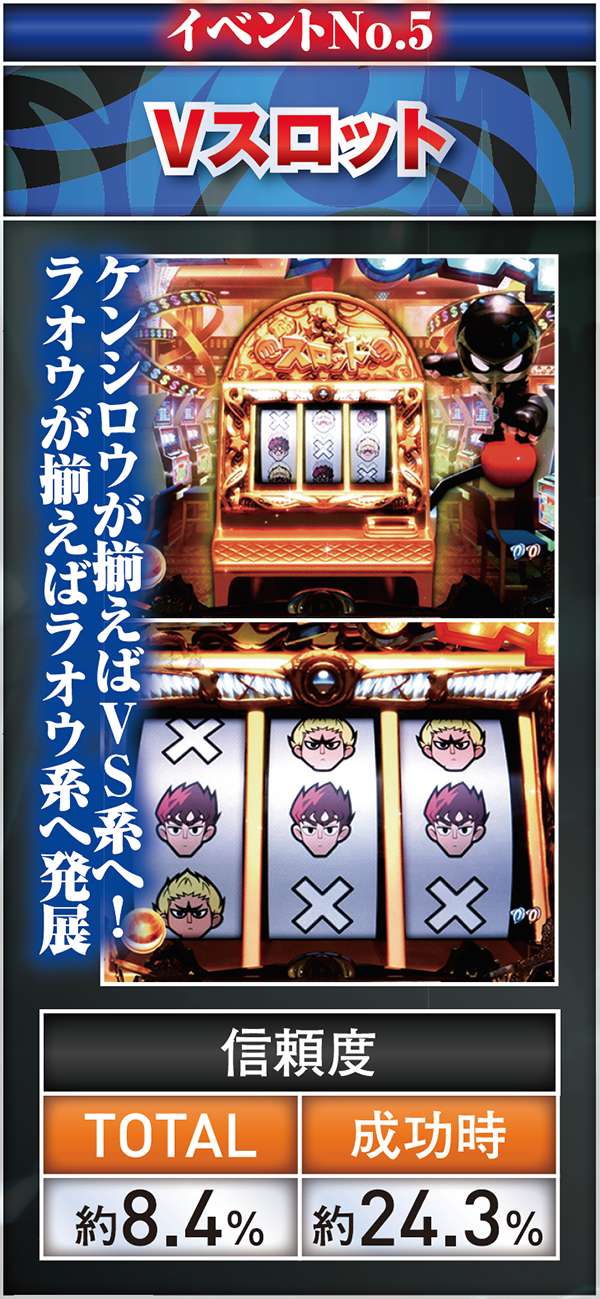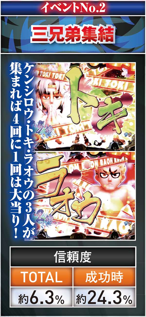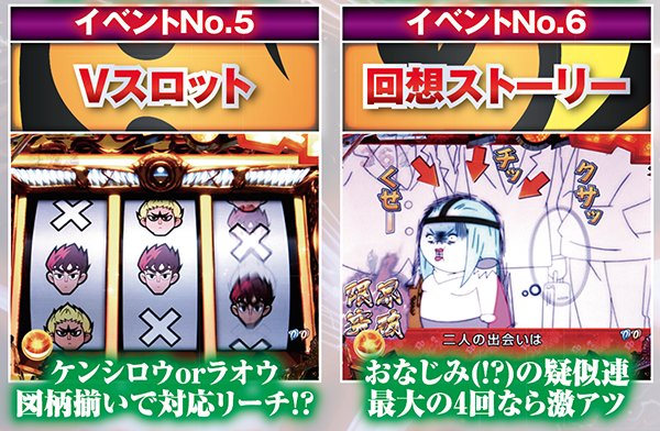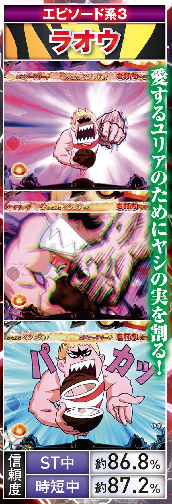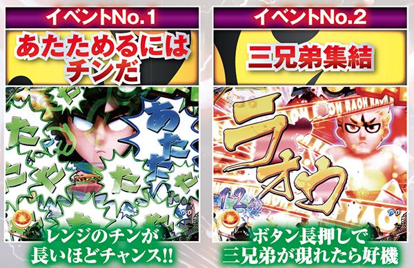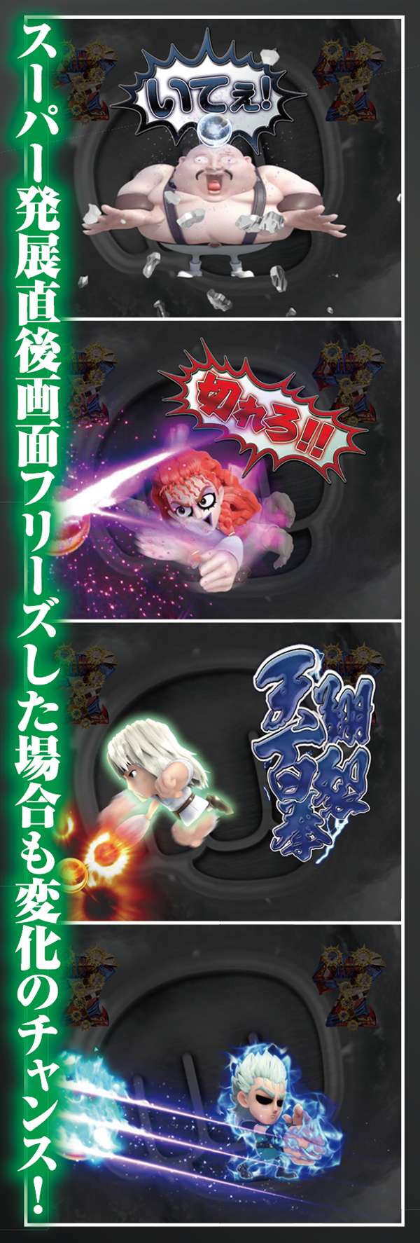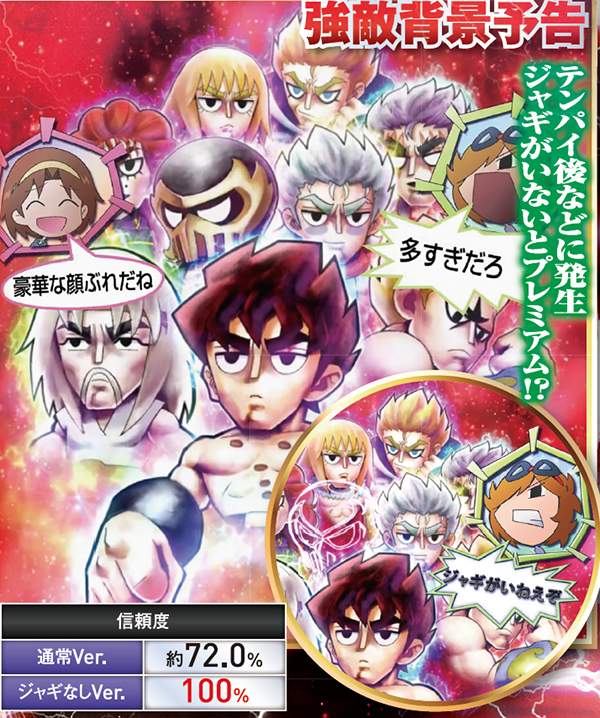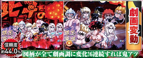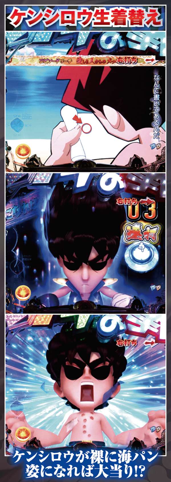 ケンシロウと強敵たちとの争いがコミカルに描かれる。最強のVSジャギでも激アツとは言い難いが、サブ液晶によるCUが発生すれば好機だ。