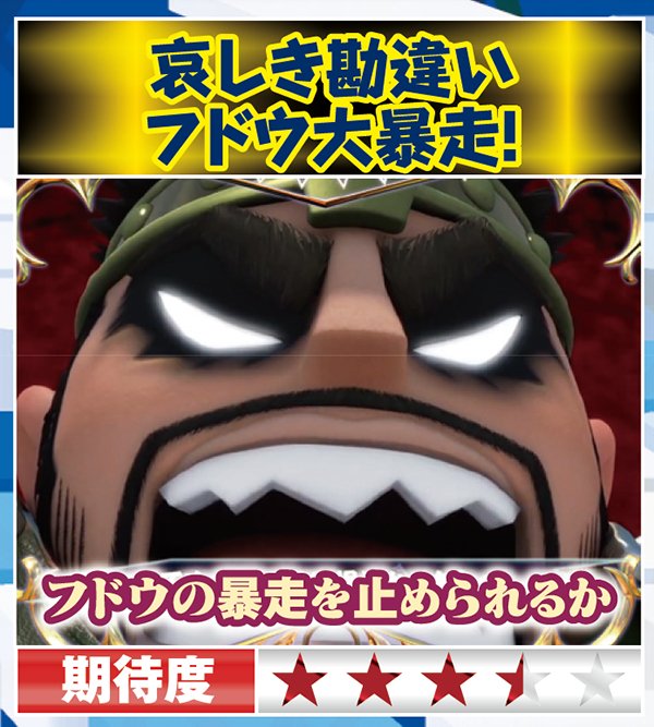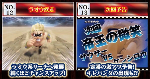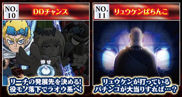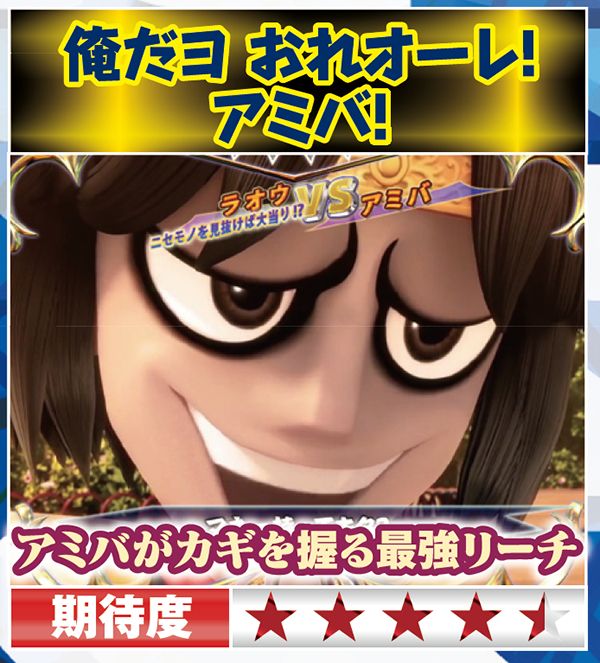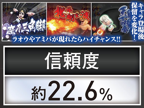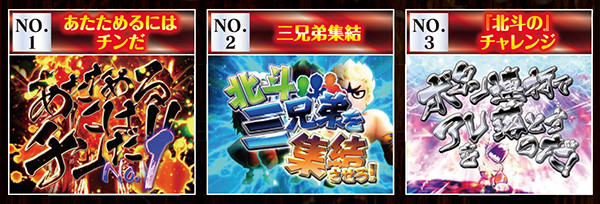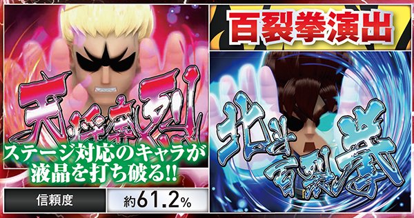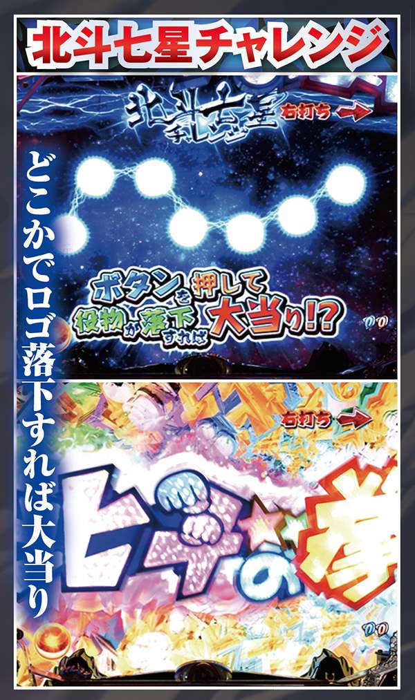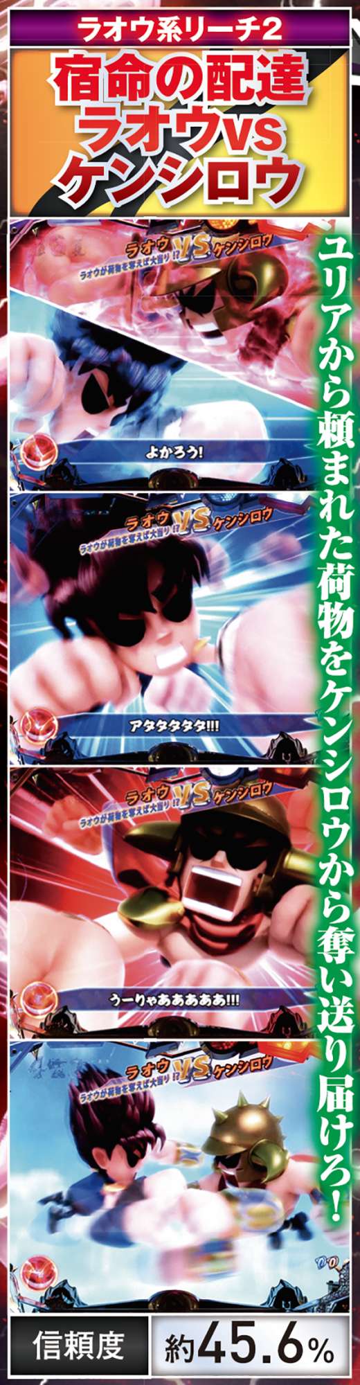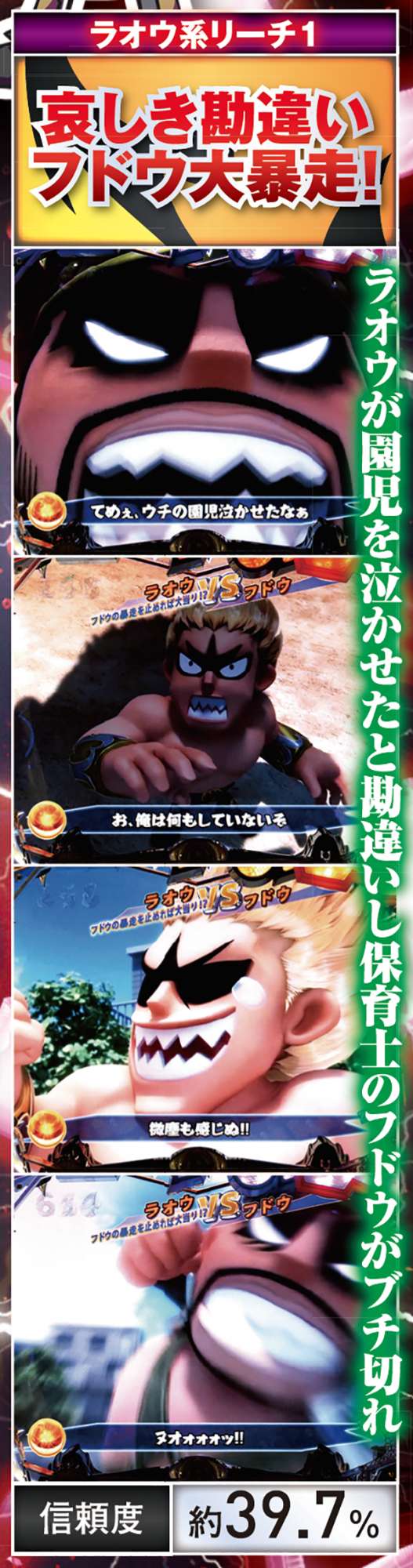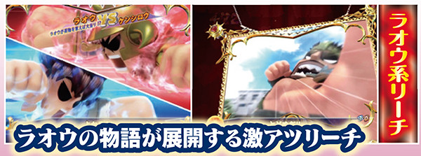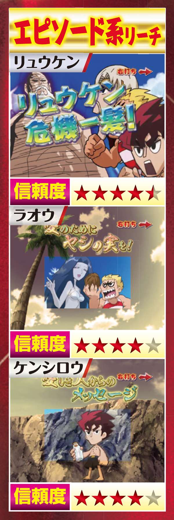 ラオウが主役となる当リーチには「北斗の」ロゴ落下を経由して発展する。4種類あるストーリーの中でもっとも期待できるのは「アミバ!」だ。