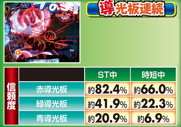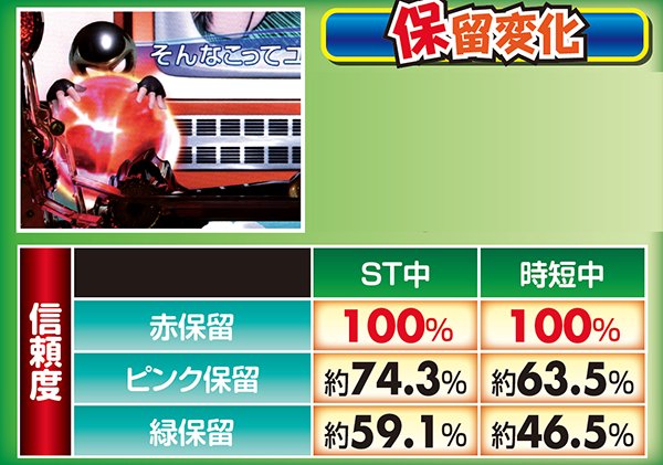 保留の色が変化すれば好機到来。緑でも約半数が大当りに繋がり、赤なら超激アツだ。