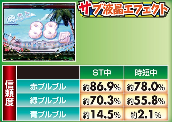 サブ液晶がブルブル動いたらエフェクトの色に注目。緑以上の発生で連チャンの期待大。
