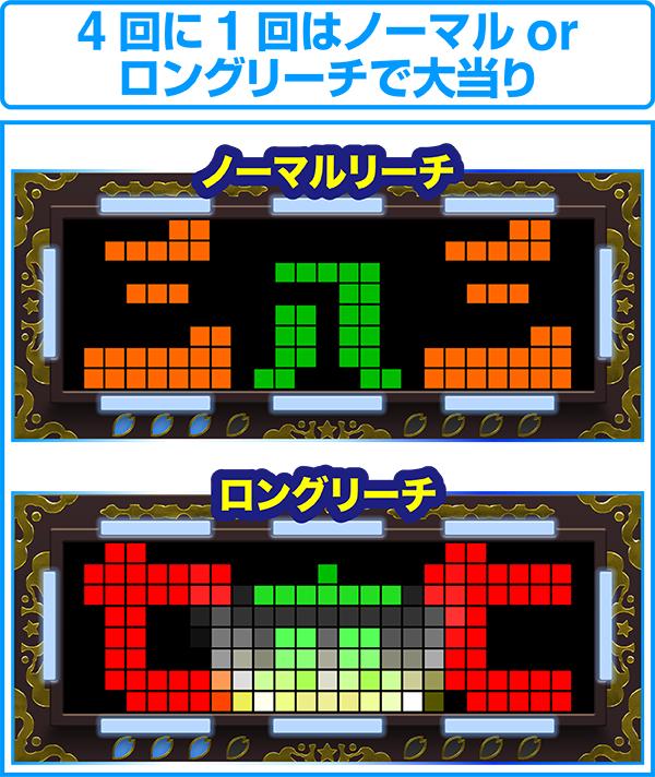 ノーマルやロングリーチでも大当りに期待できる絶妙なリーチバランスになっているため、スーパーリーチに発展しなくても諦めるのはまだ早いぞ!