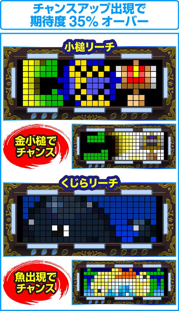 チャンスアップが出現すれば大当りに期待できるリーチ系統。それぞれ固有のチャンスアップがあるので、発展したときはチェックしよう。