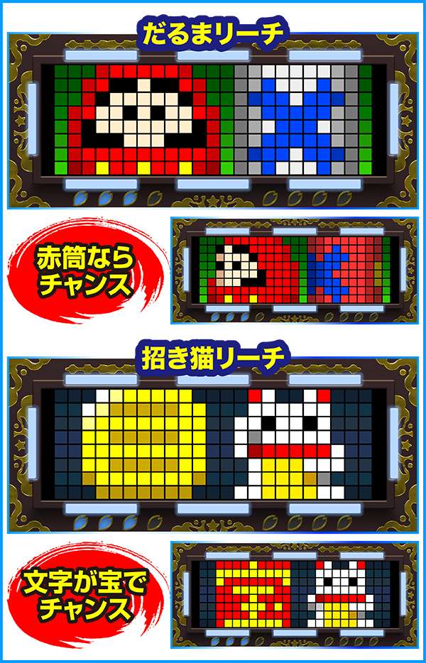 小槌/くじら/だるま/招き猫リーチ・みどころ