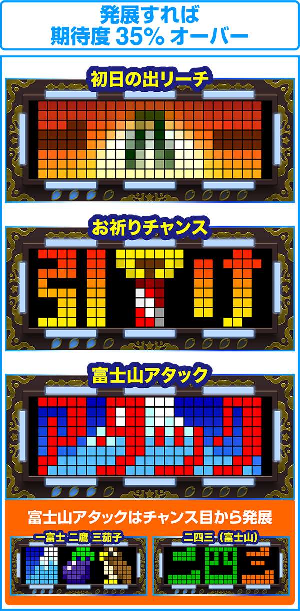 発展すれば大チャンスのリーチ系統。富士山アタックはチャンス目から発展する特殊なリーチとなっているので要注目!