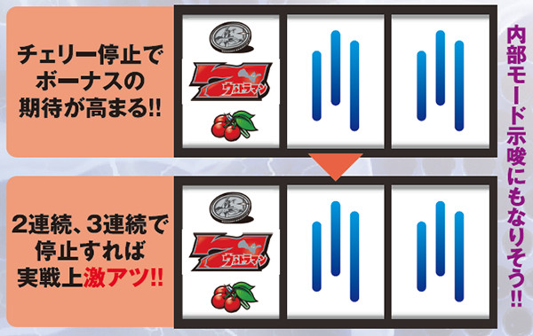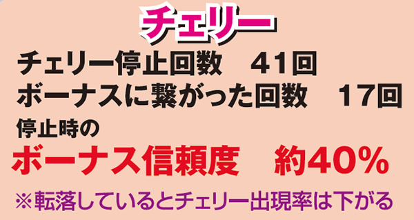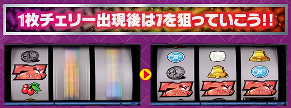 リーチ目出現率がそれほど高くないため、1枚チェリー出現後は赤7を狙うなどして迅速なフラグ察知に努めよう。
